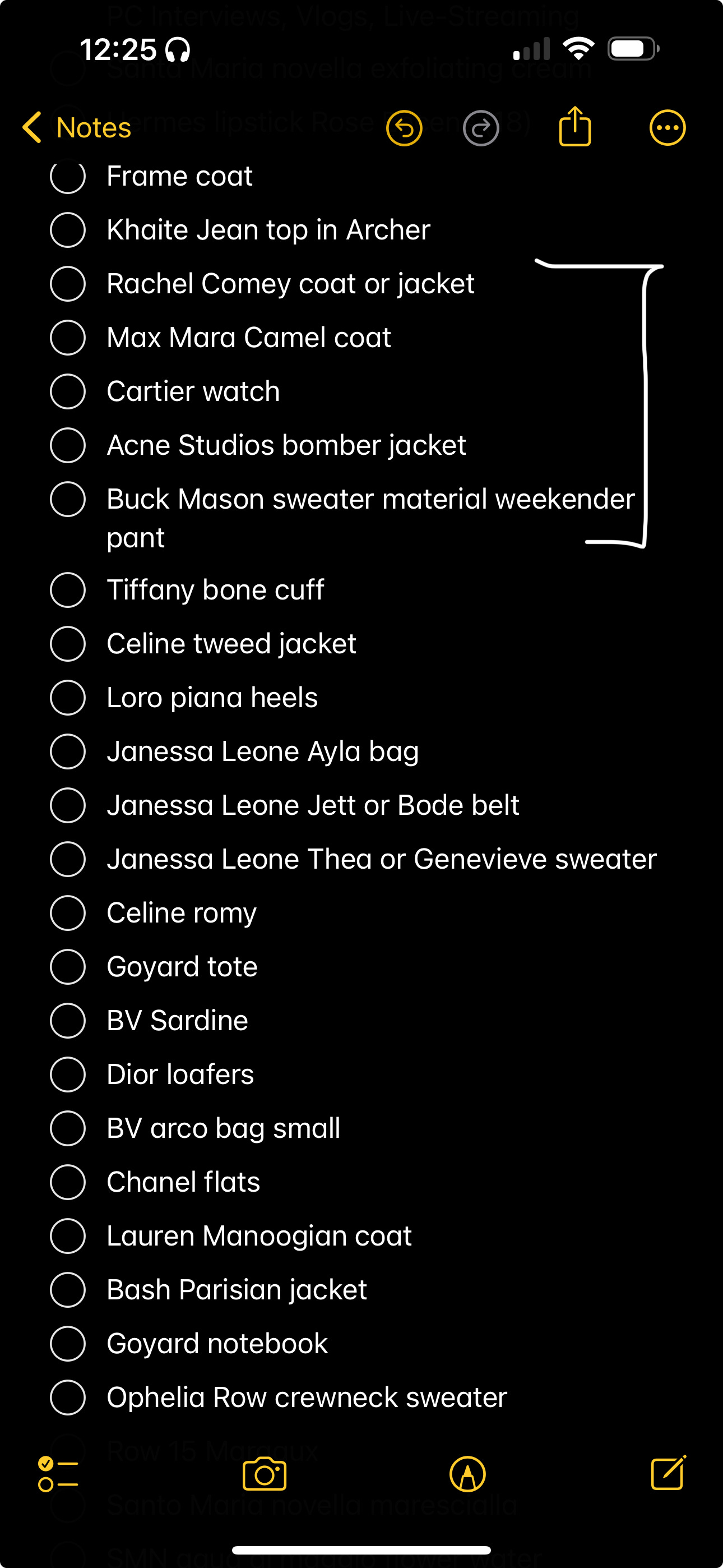 When I see what I like (an ootd, beauty product, coats, jackets, purse, a book), I immediately take a screenshot or put it on my “wishlist” on the Notes app.