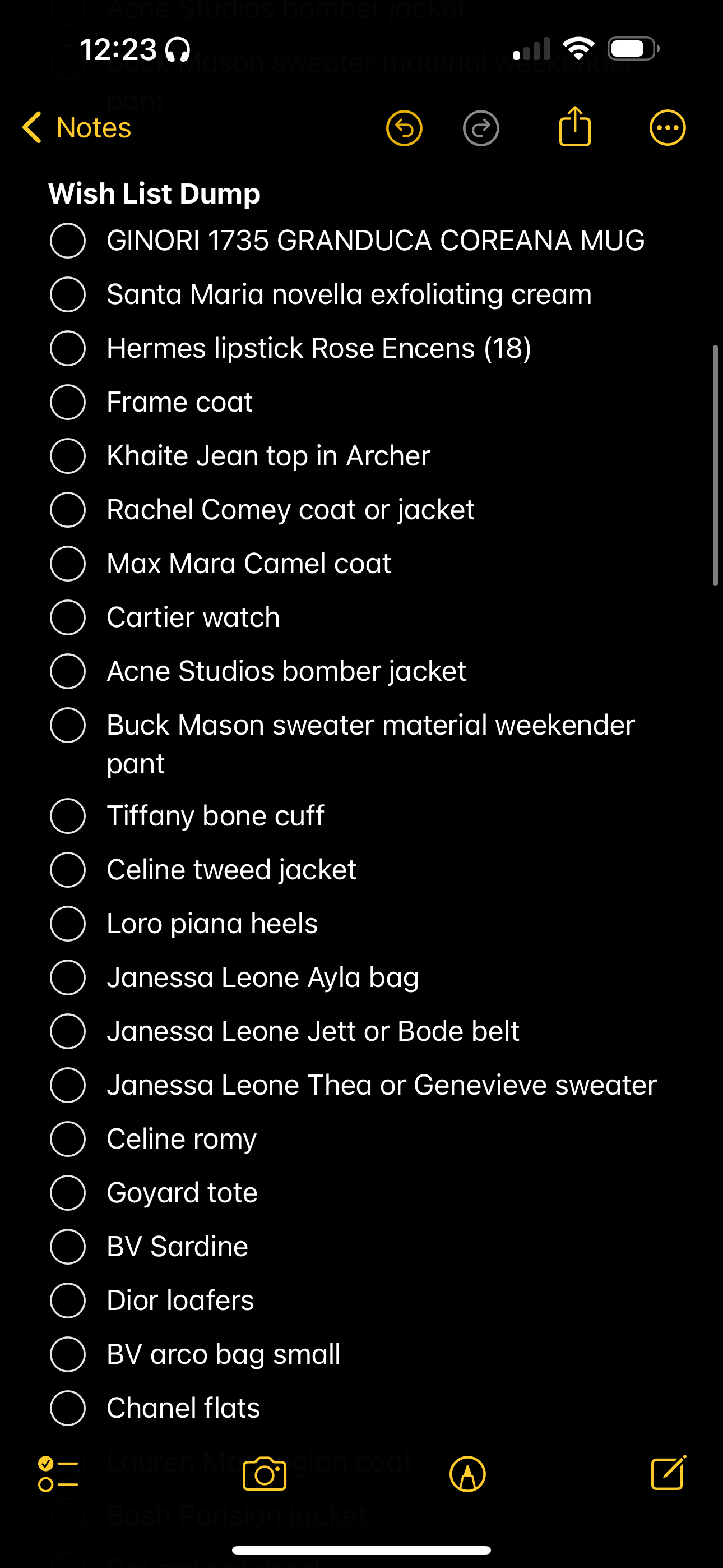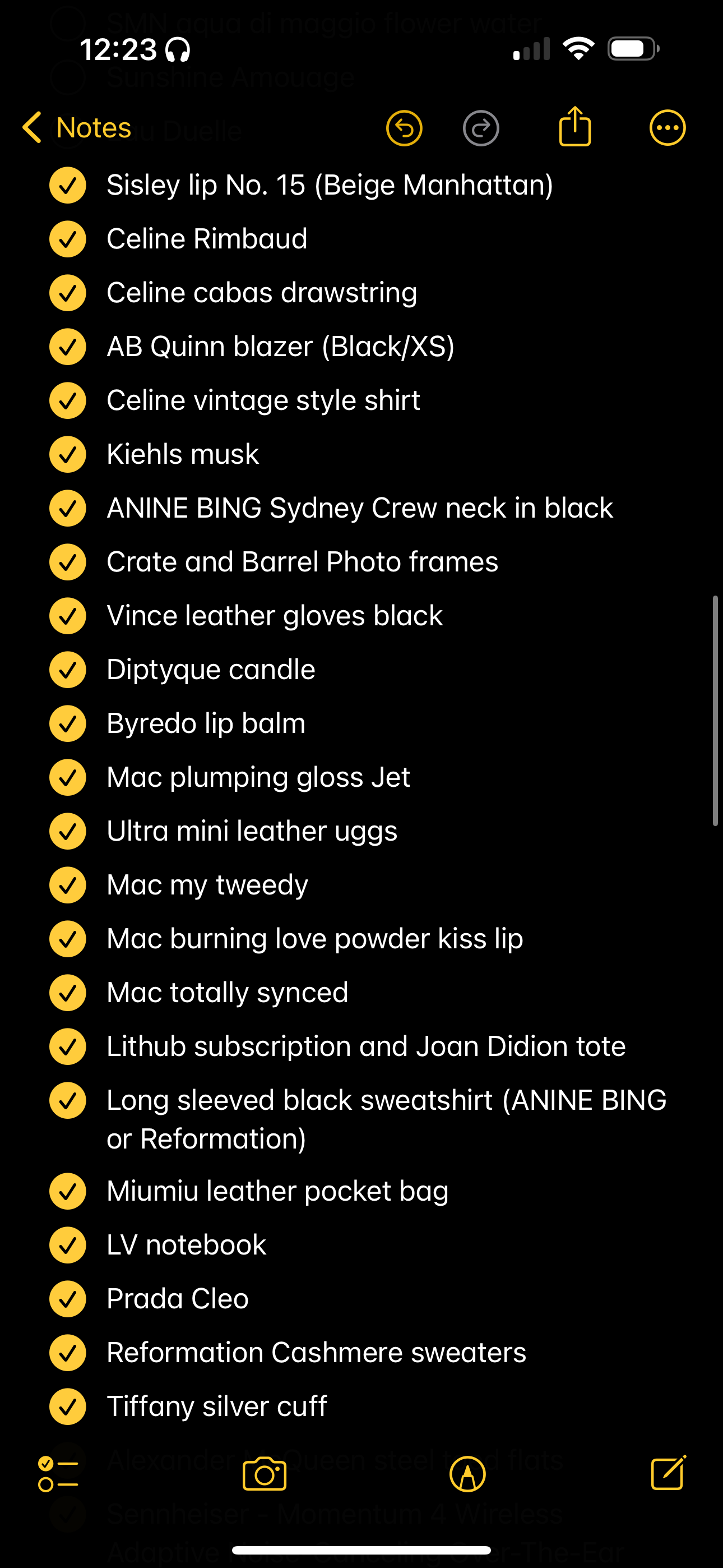 So every week, I scroll through my list and check off something that I no longer want to buy, or was already gifted, or something that I purchased for myself: